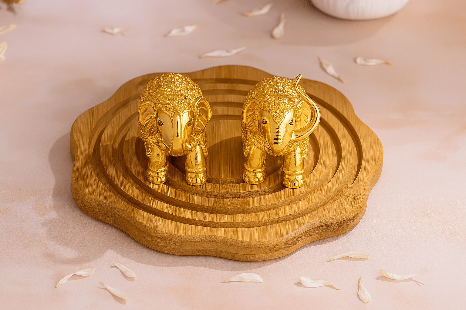 - Average Weight (Per Elephant): 150 grams to 300 grams (Suggesting a lightweight material like resin or light alloy with gold plating/paint.)